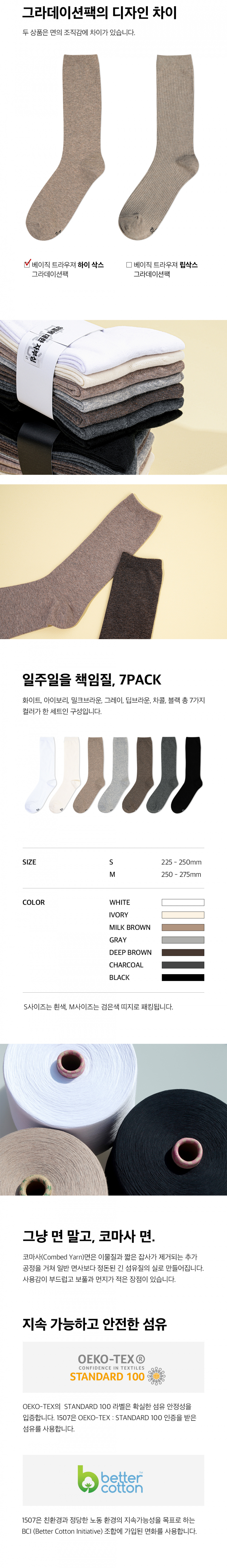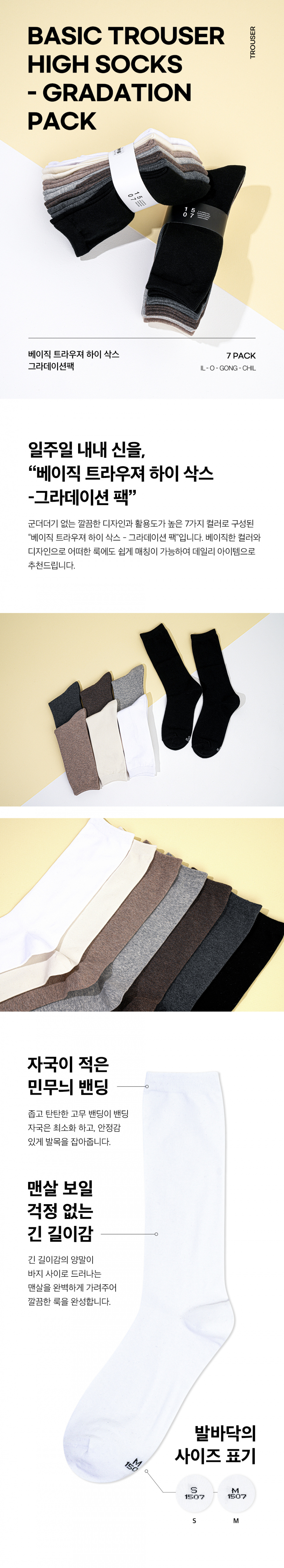 [7PACK] 1507 베이직 트라우져 하이 삭스 - 그라데이션팩