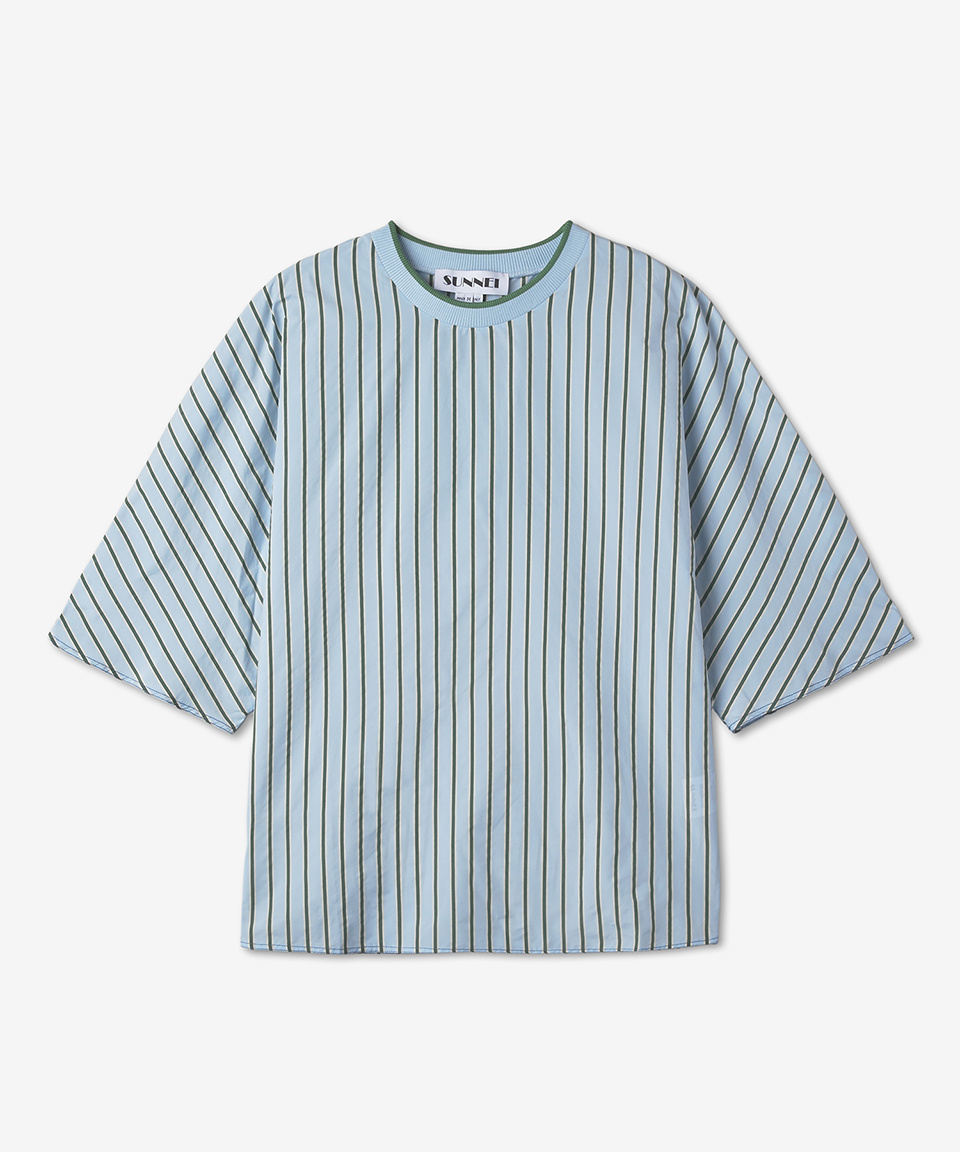 기모노 반소매 티셔츠 - 그린:블루 스트라이프 / CRTWMTOP008NYL0227504