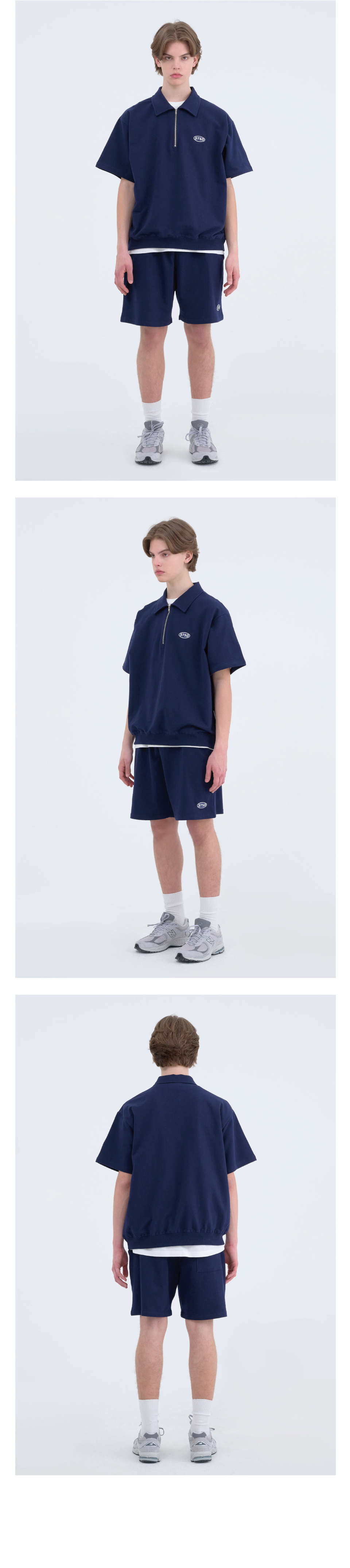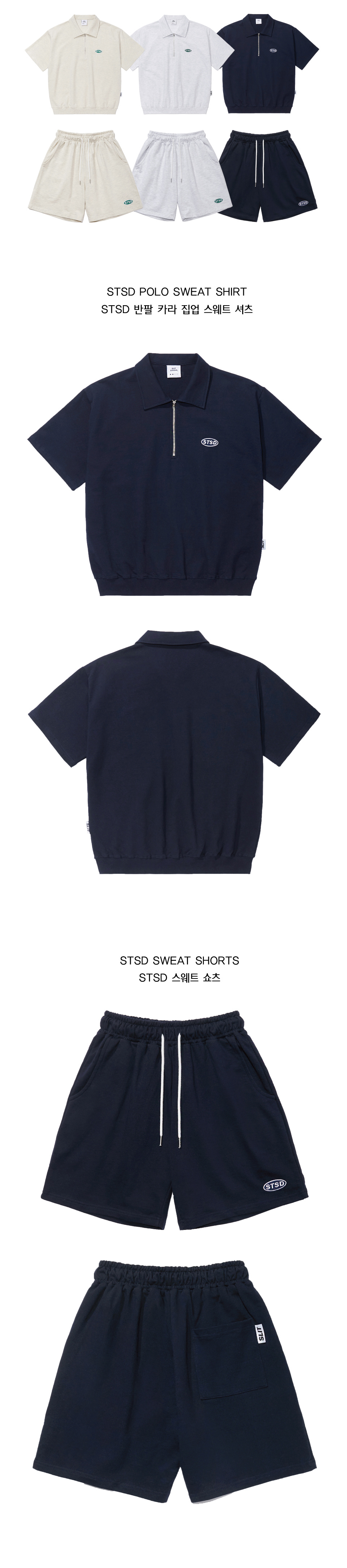 [SET] STSD 반팔 카라집업 스웻셔츠 쇼츠 세트 네이비