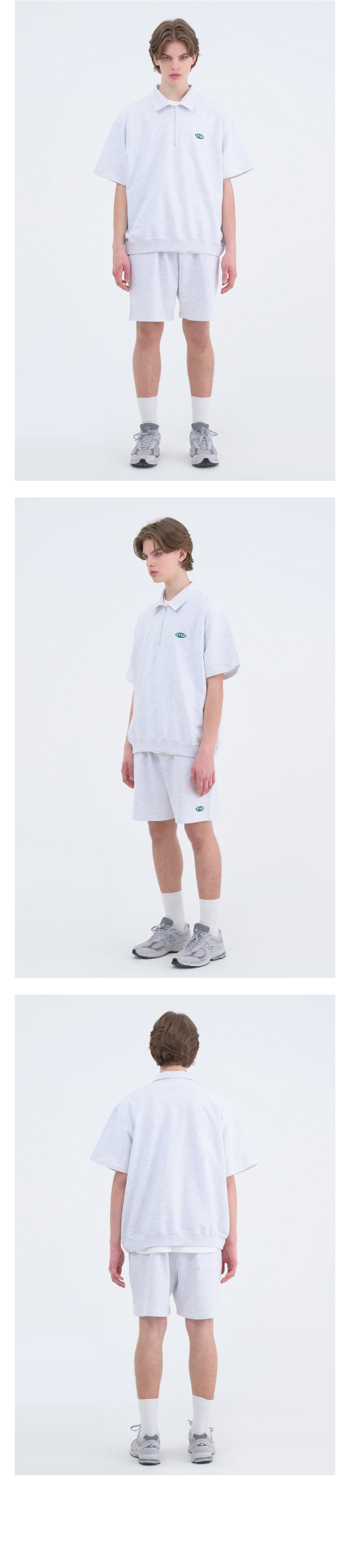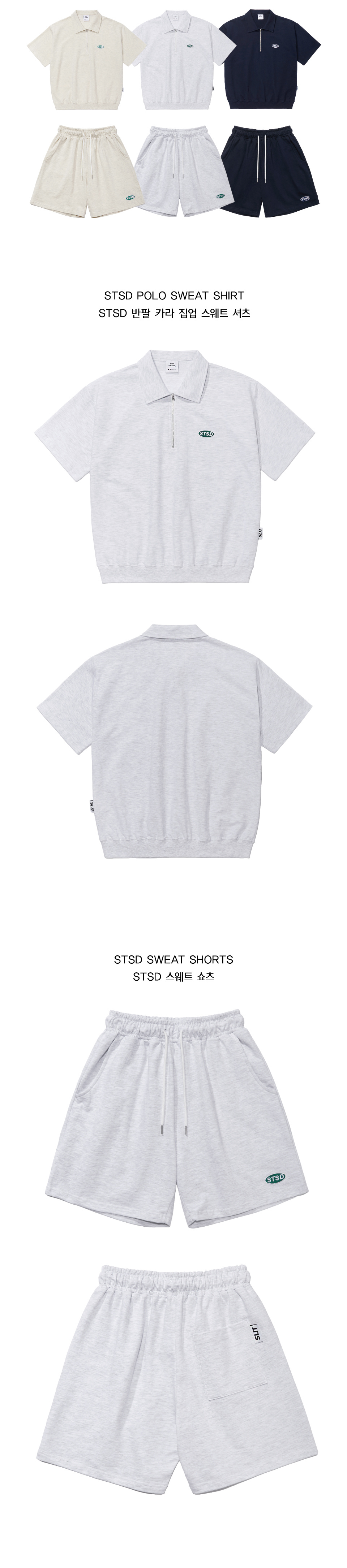 [SET] STSD 반팔 카라집업 스웻셔츠 쇼츠 세트 멜란지 그레이