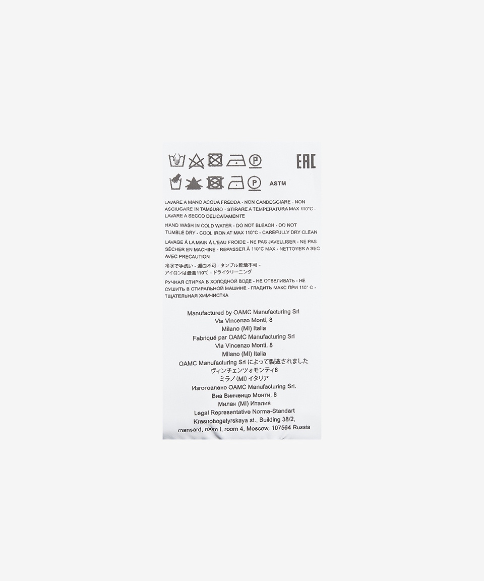 오에이엠씨(OAMC)는 2013년 칼하트 WIP와 슈프림 출신의 디자이너 듀오가 설립한 브랜드입니다. Over All Master Cloth의 약자인 OAMC는 자기표현이라는 주제 아래 만들어졌습니다. 음악, 미술, 영화, 사진 등 다양한 예술에서 영감을 받아 스트릿, 워크 웨어와 밀리터리 요소를 프리미엄 디자인에 녹여내 오래 입을 수 있는 질 좋은 제품을 제공합니다.
