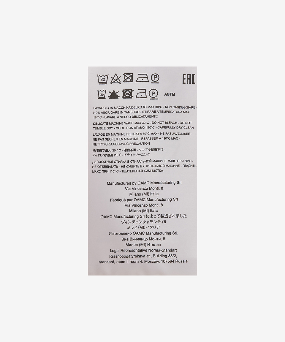 오에이엠씨(OAMC)는 2013년 칼하트 WIP와 슈프림 출신의 디자이너 듀오가 설립한 브랜드입니다. Over All Master Cloth의 약자인 OAMC는 자기표현이라는 주제 아래 만들어졌습니다. 음악, 미술, 영화, 사진 등 다양한 예술에서 영감을 받아 스트릿, 워크 웨어와 밀리터리 요소를 프리미엄 디자인에 녹여내 오래 입을 수 있는 질 좋은 제품을 제공합니다.