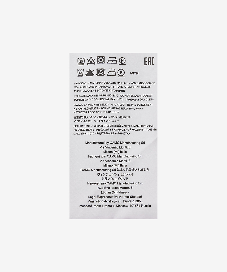 오에이엠씨(OAMC)는 2013년 칼하트 WIP와 슈프림 출신의 디자이너 듀오가 설립한 브랜드입니다. Over All Master Cloth의 약자인 OAMC는 자기표현이라는 주제 아래 만들어졌습니다. 음악, 미술, 영화, 사진 등 다양한 예술에서 영감을 받아 스트릿, 워크 웨어와 밀리터리 요소를 프리미엄 디자인에 녹여내 오래 입을 수 있는 질 좋은 제품을 제공합니다.