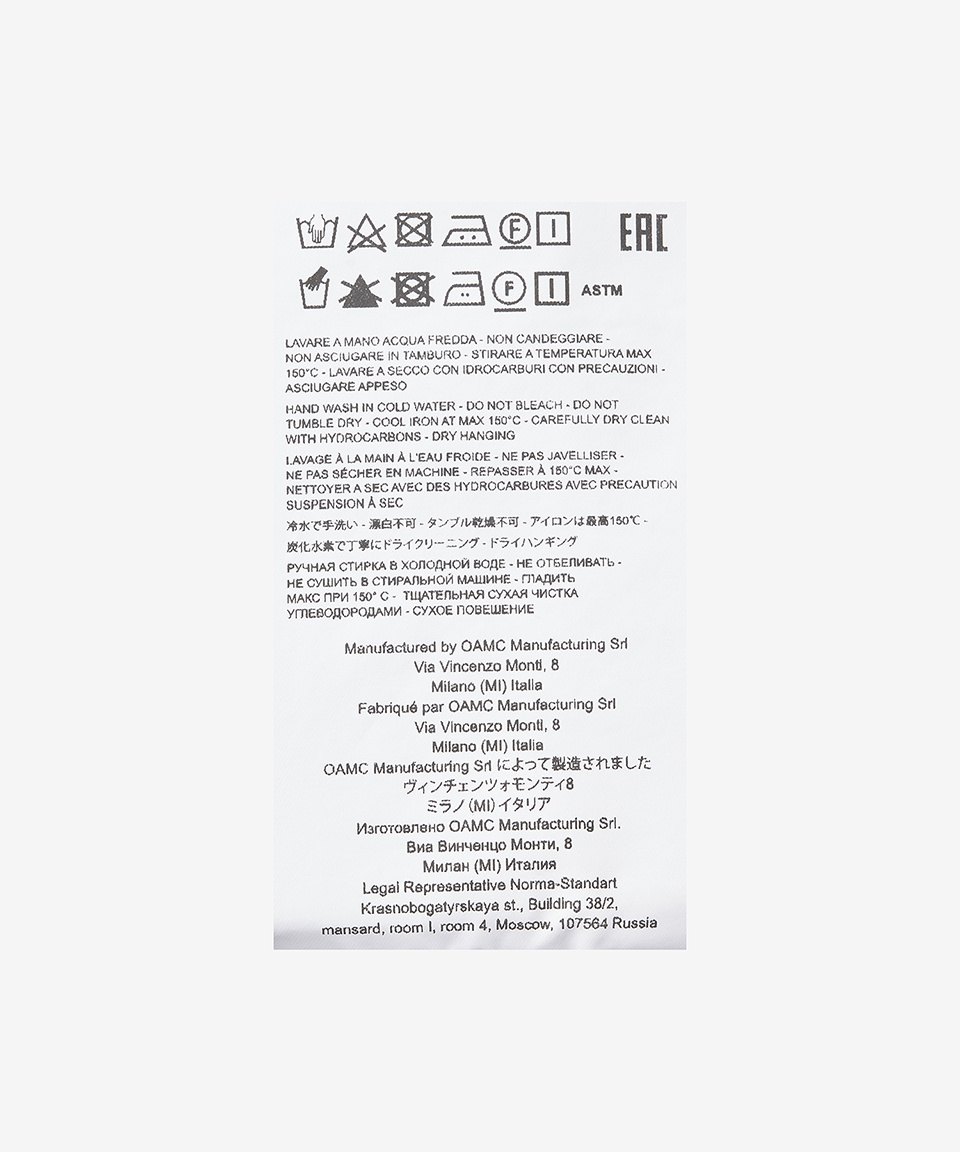 오에이엠씨(OAMC)는 2013년 칼하트 WIP와 슈프림 출신의 디자이너 듀오가 설립한 브랜드입니다. Over All Master Cloth의 약자인 OAMC는 자기표현이라는 주제 아래 만들어졌습니다. 음악, 미술, 영화, 사진 등 다양한 예술에서 영감을 받아 스트릿, 워크 웨어와 밀리터리 요소를 프리미엄 디자인에 녹여내 오래 입을 수 있는 질 좋은 제품을 제공합니다.