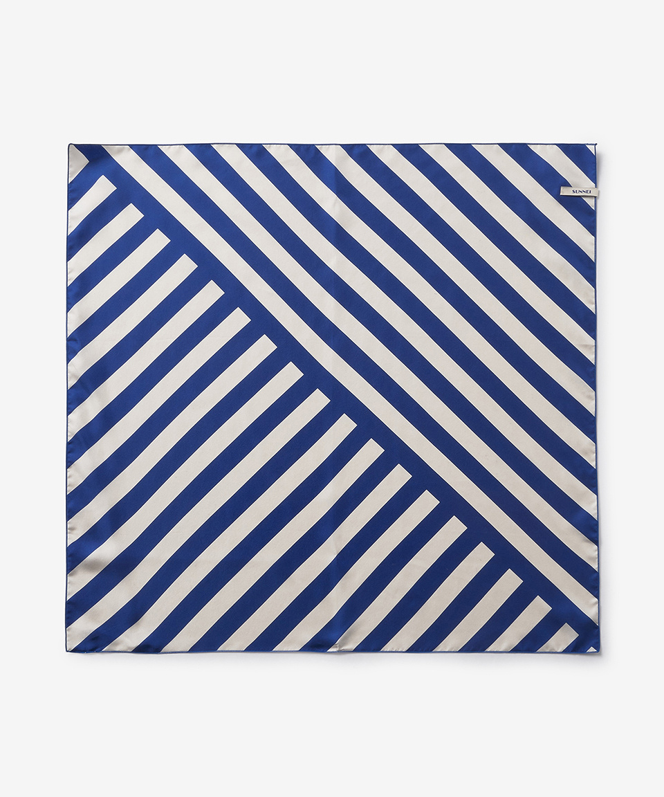 스트라이프 스카프 - 화이트:부티크블루 / CACCXSAC027SIL0017479