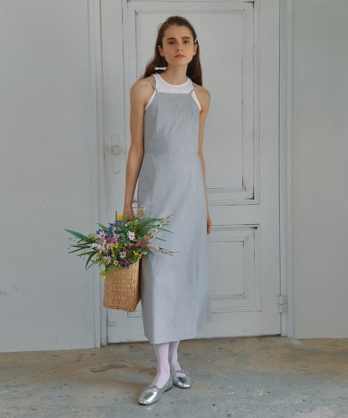 BACK RIBBON SLEEVELESS ONEPIECE GRAY