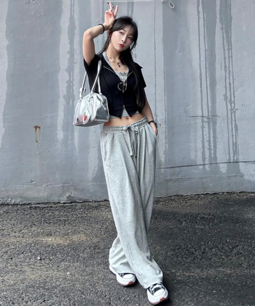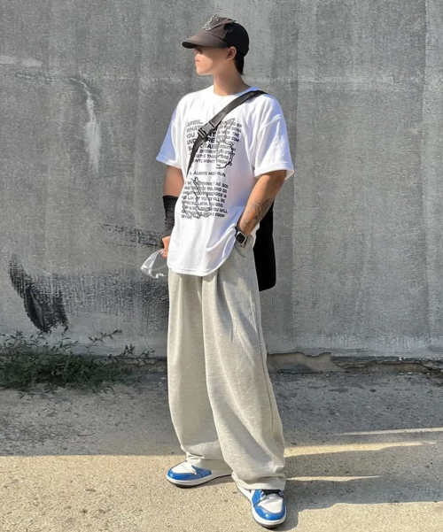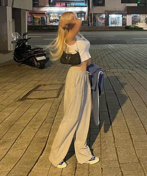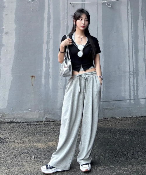 원턱 와이드 스웨트 팬츠 [화이트 멜란지]