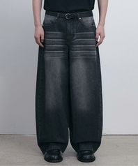 스트라이프 커브드 데님팬츠 (블랙)