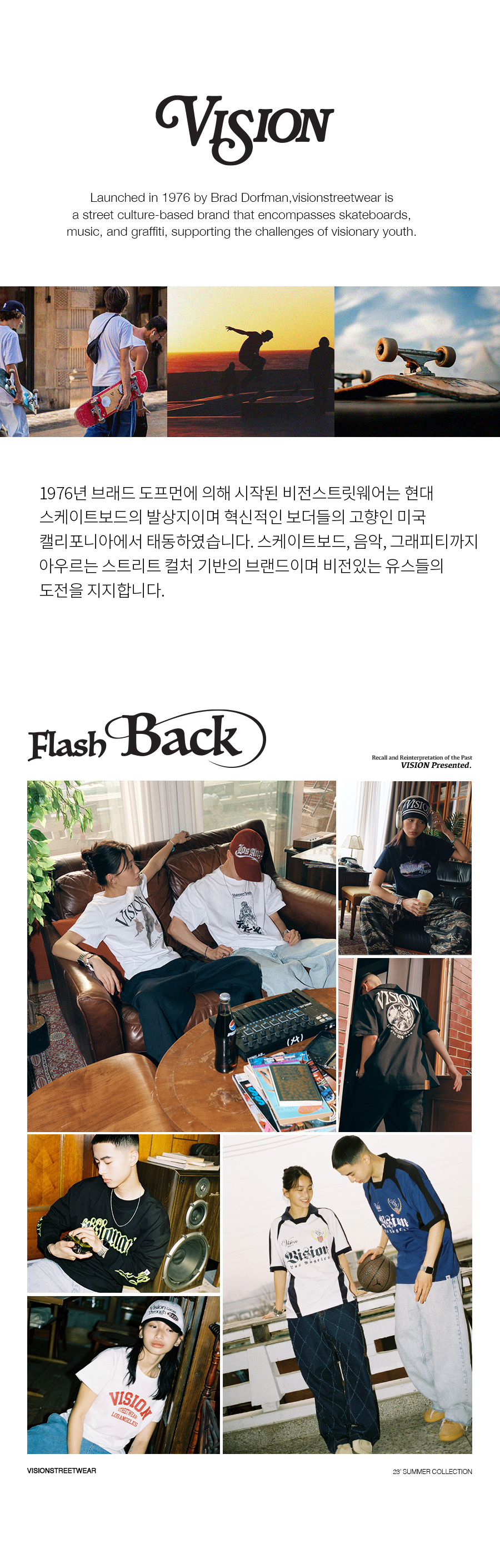 비전스트릿웨어(VISION STREETWEAR)는 1976년, 미국 LA에서 론칭한 스트릿 컬처 기반의 브랜드입니다. 스케이트보드와 음악, 그라피티 등의 서브컬처를 아우르며 비전 있는 유스들의 도전을 지지합니다.
