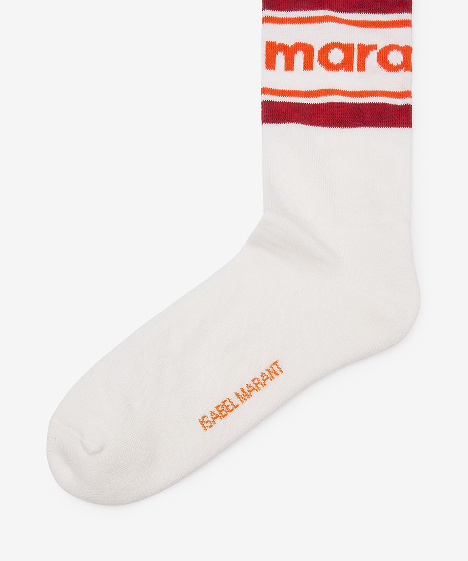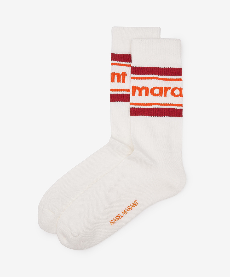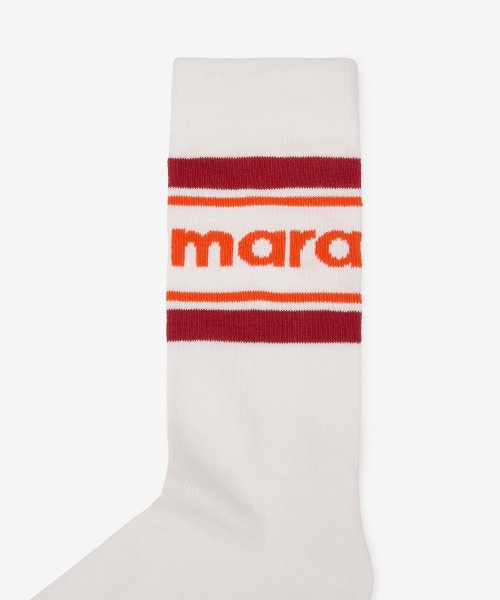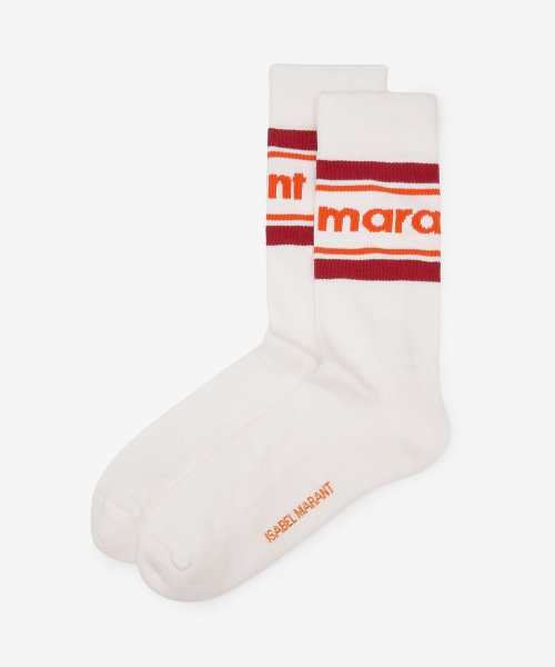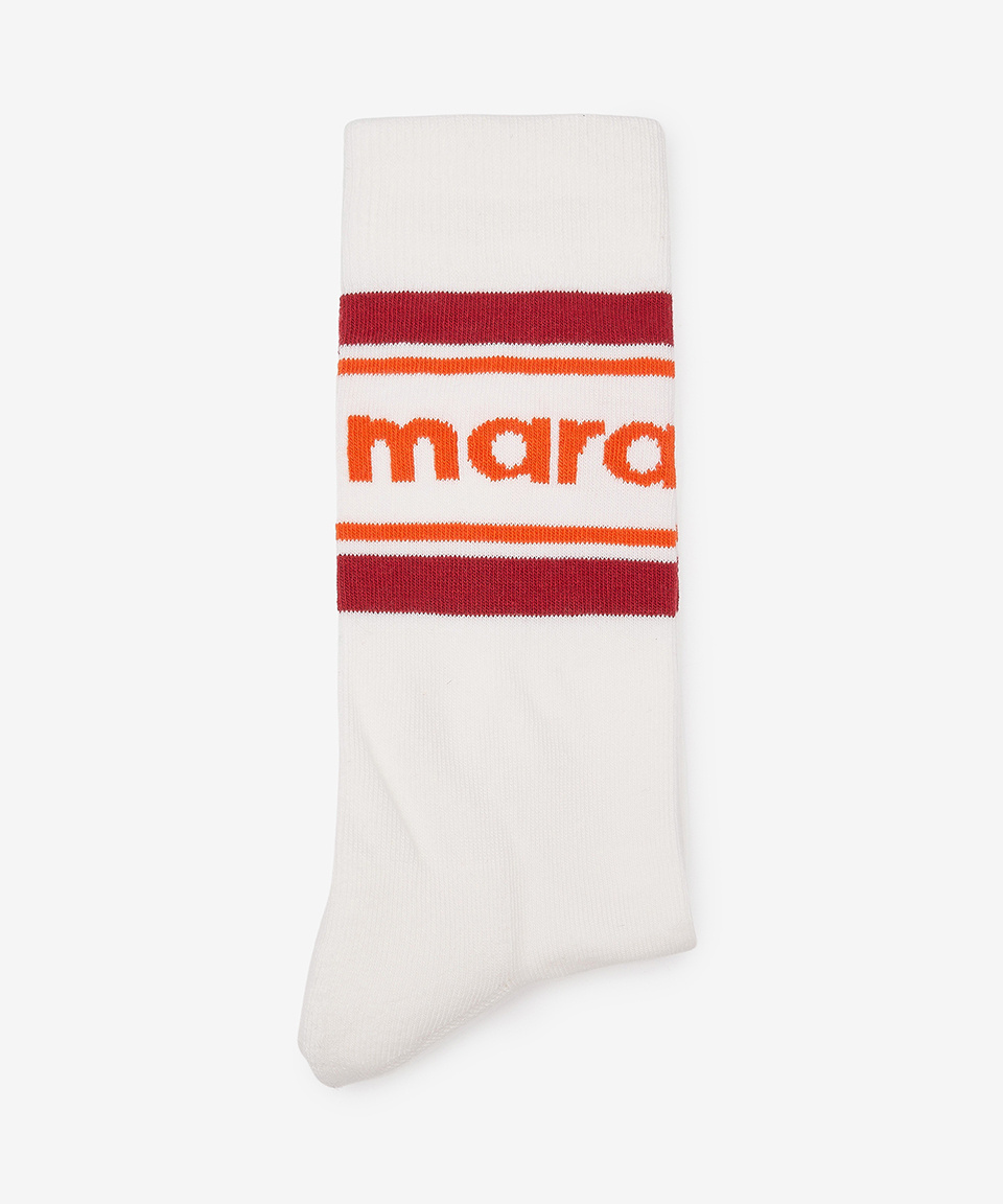 인타르시아 니트 로고 발목 양말 - 화이트:오렌지 / CT003JHAA1C23J11OR