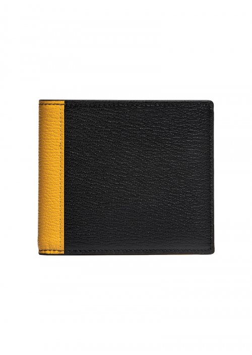 크리스페 바이폴드 6CC 반지갑_블랙 옐로우 (프렌치 고트스킨)
