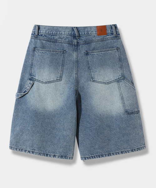 바이오워싱 카펜터 버뮤다 데님 팬츠_더스트 인디고