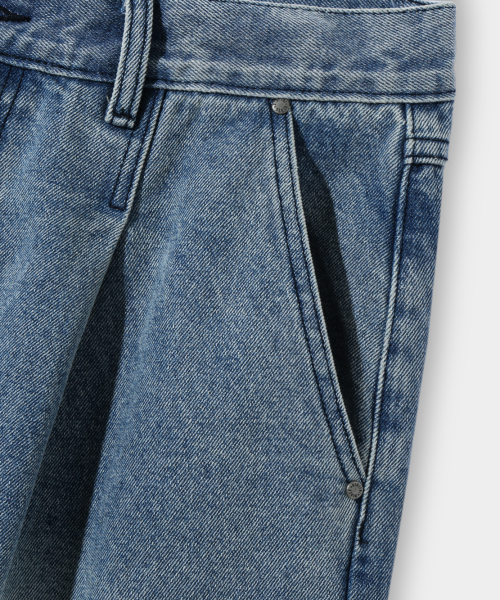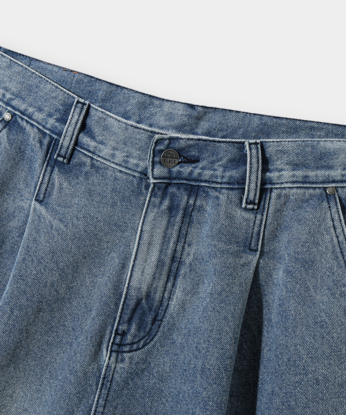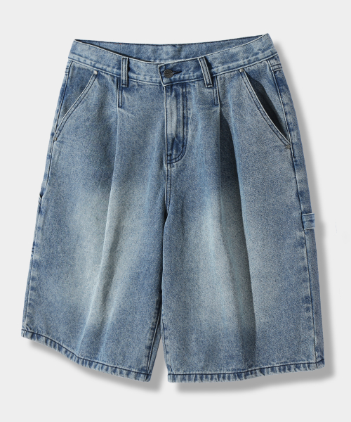 바이오워싱 카펜터 버뮤다 데님 팬츠_라이트블루