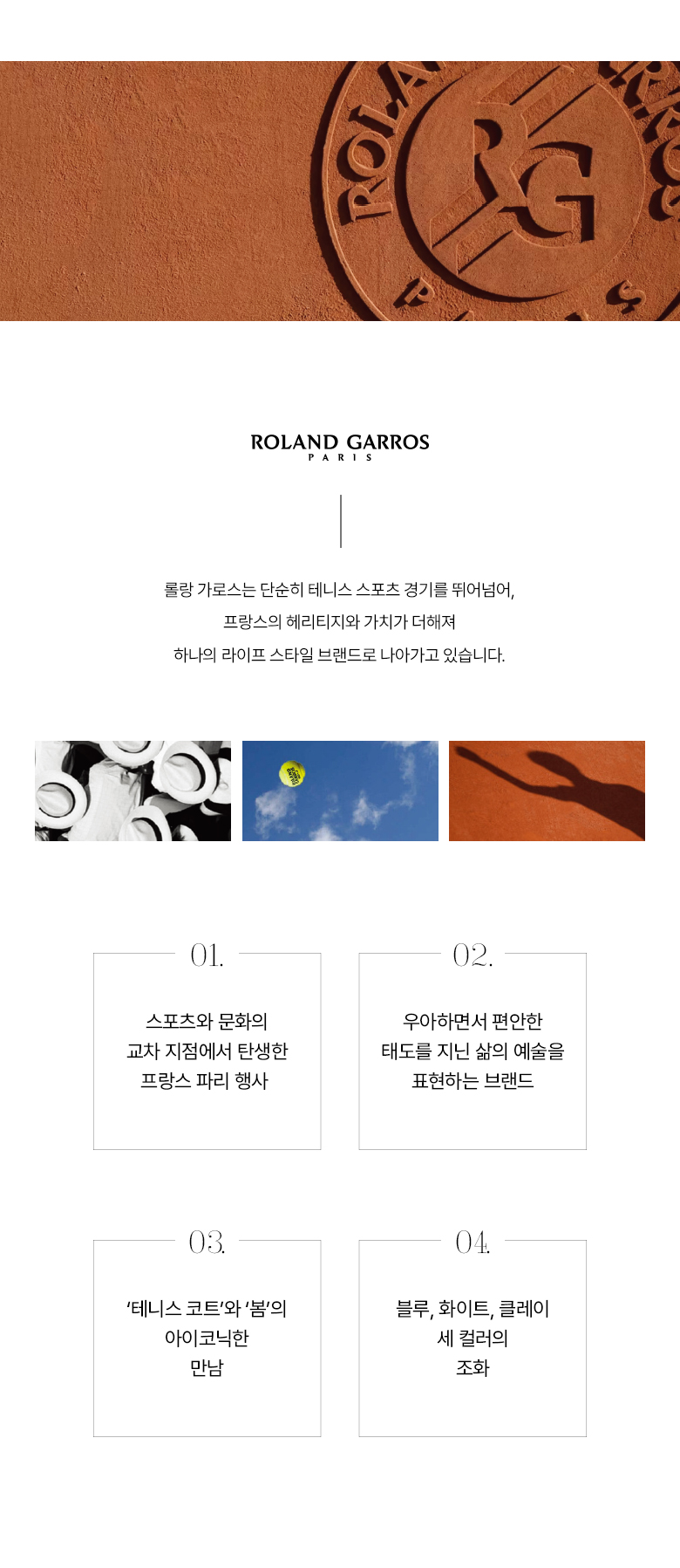 롤랑가로스(ROLANDGARROS)는 단순한 테니스 스포츠 경기를 뛰어넘어 프랑스의 헤리티지와 가치를 더해 하나의 라이프스타일 브랜드로 나아가고 있습니다.