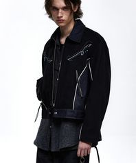SUEDE & DENIM WESTERN JACKET - BLACK