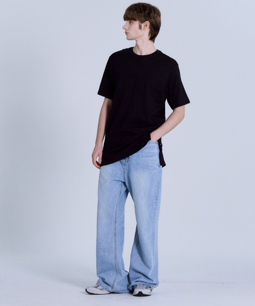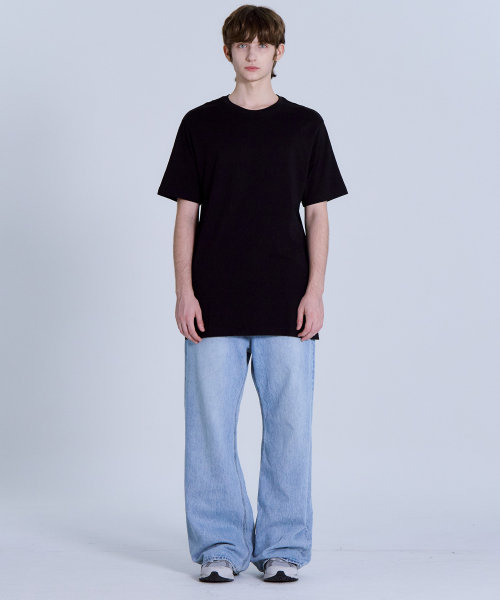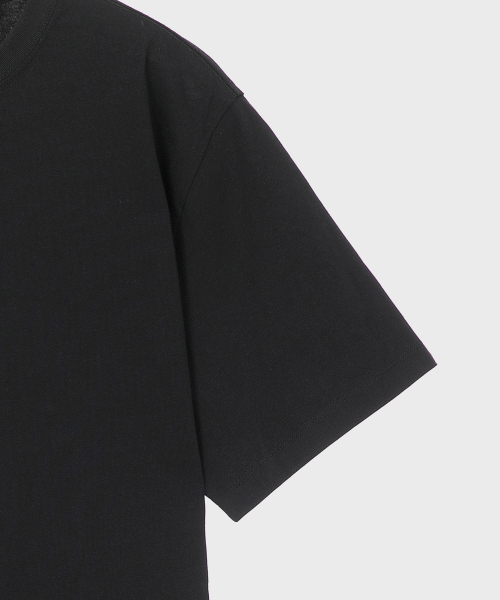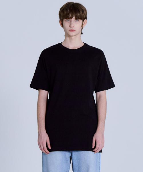 UNI 레이어드 라운드넥 반팔티 긴기장(+7cm) 블랙 LATS0106