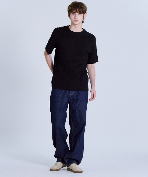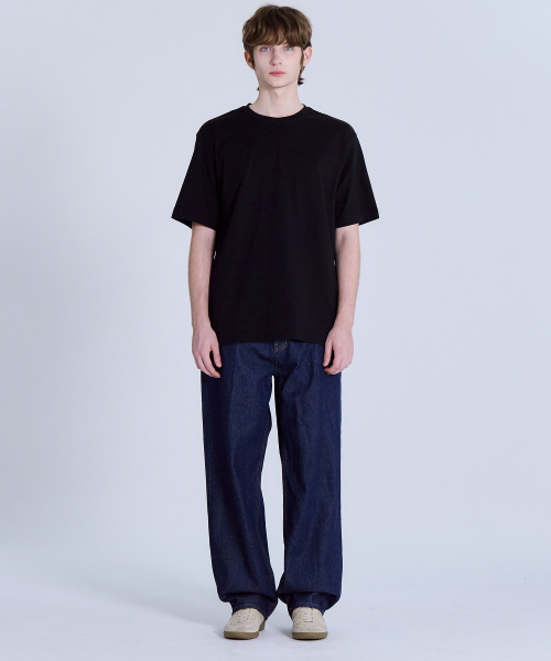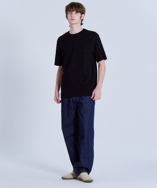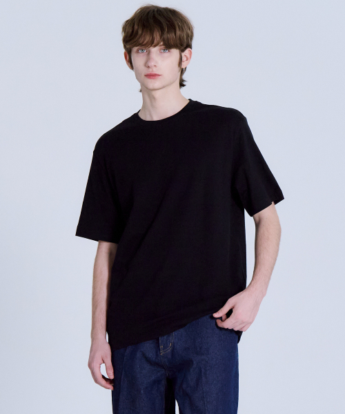 UNI 릴렉스핏 라운드넥 반팔티셔츠 블랙 LATS0105