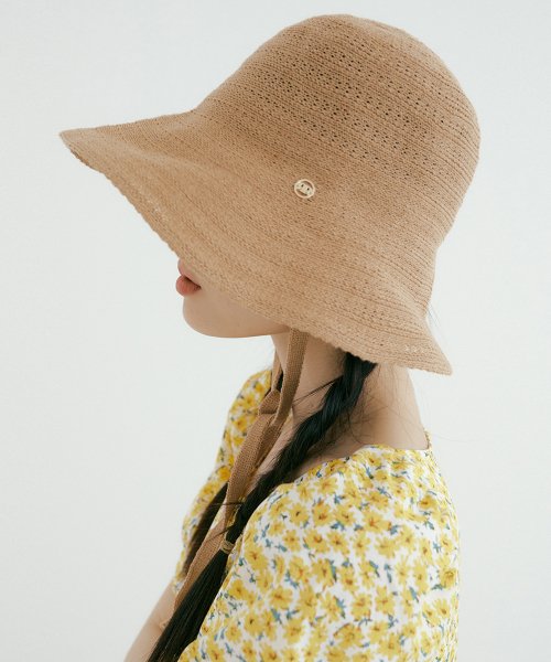 TIR LOGO CHARM RAFFIA HAT CREAM