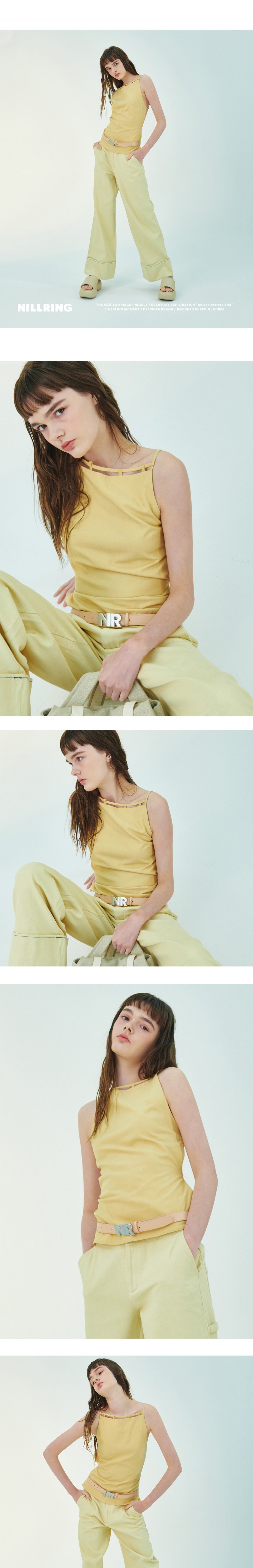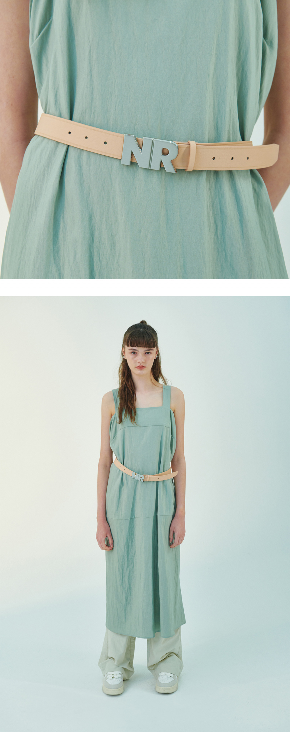 닐링의 NR버클 장식이 포인트가 되는 가죽끈 벨트입니다.