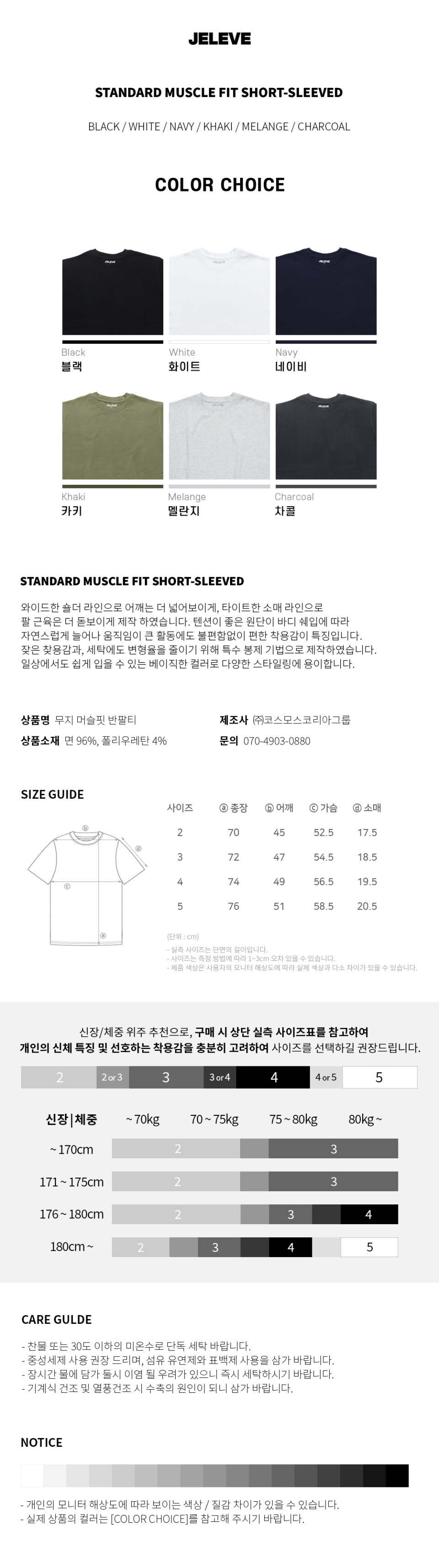 무지 머슬핏 반팔 5컬러