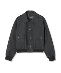 여성 인조가죽 크롭 점퍼 (BLACK) (HB2LE51)