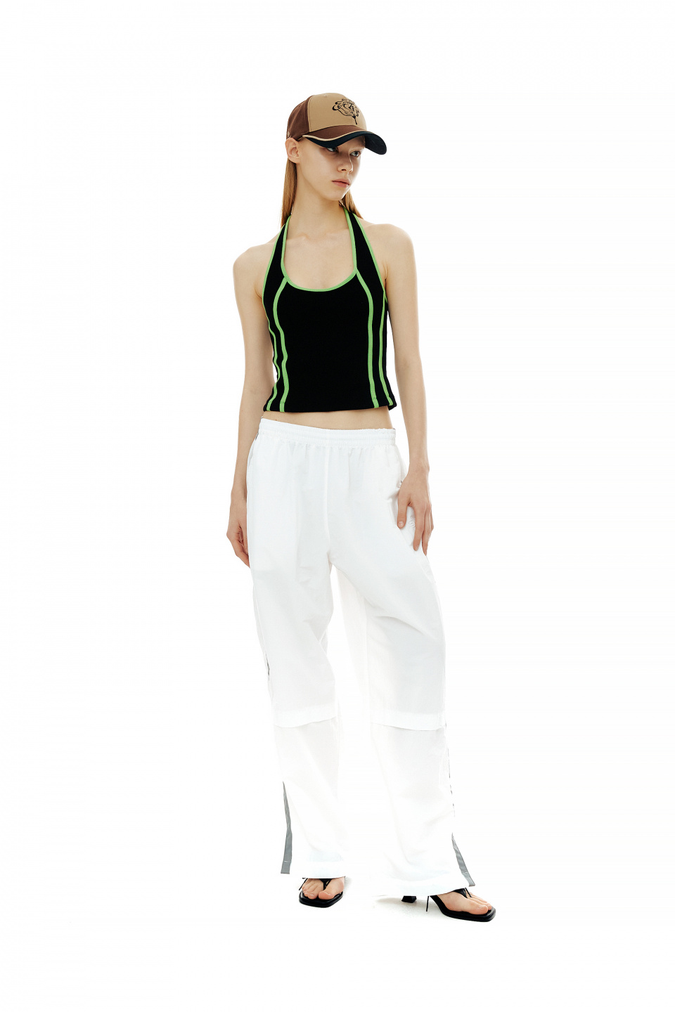 COLOR LINE HALTER NECK TOP / BLACK