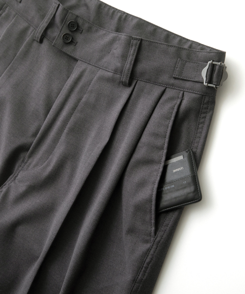 두툼한 정장 팬츠 원단을 데님에 주로 쓰이는 체인 스티치로 전체 봉제한 제품입니다
