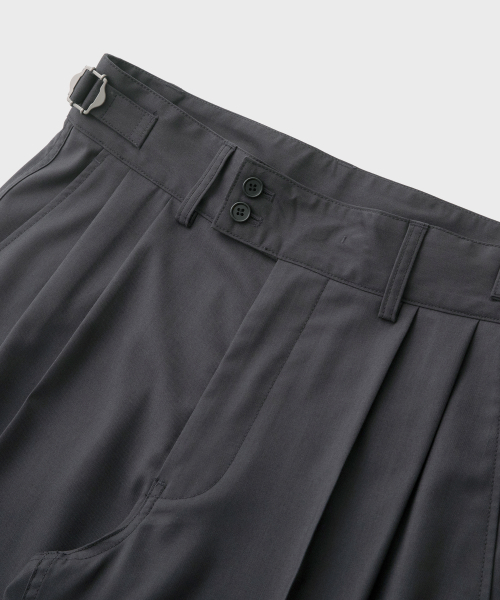 허리 양쪽의 어져스터로 사이즈 조절이 가능해 별도의 벨트 없이 착용이 가능합니다