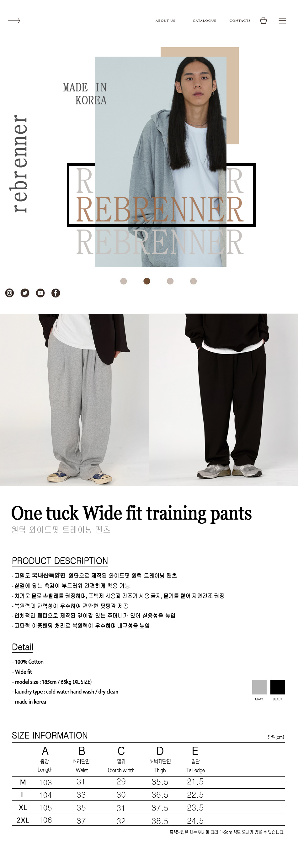 리브레너(REBRENNER)는 기본에 충실한 디자인을 바탕으로 위탁 생산이 아닌 재단, 재봉, 제조 공장을 자체적으로 운영하여 원재료 매입부터 제조, 판매까지 책임을 지고 생산하여 뛰어난 퀄리티와 중간 마진 없는 합리적인 가격대의 컬렉션을 선보입니다. 어느 한 트렌드에 기울지 않고 다양한 문화를 누구나 즐길 수 있는 재미있는 스토리를 만들어 나가는 브랜드입니다.