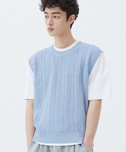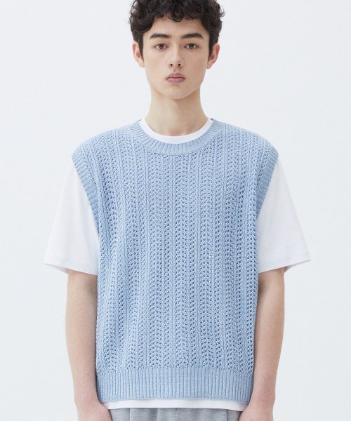 와플 펀칭 니트 베스트 (SKY BLUE)