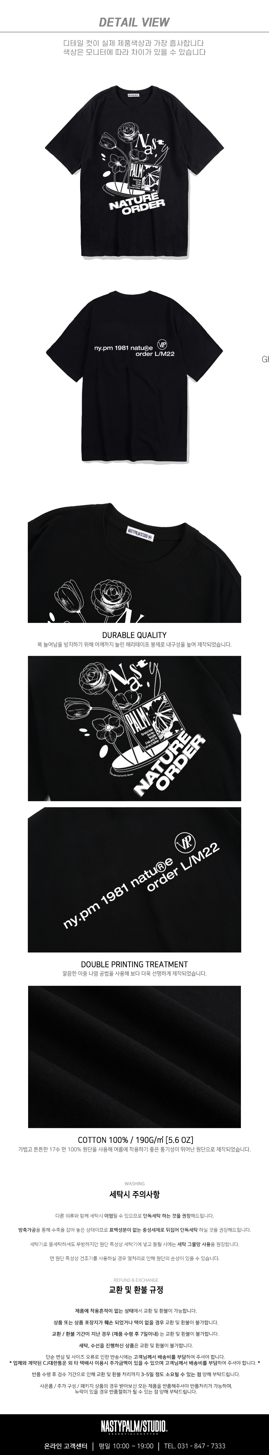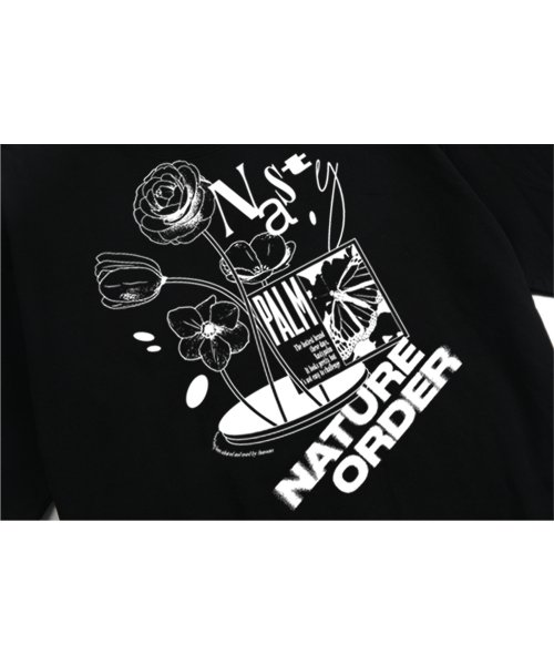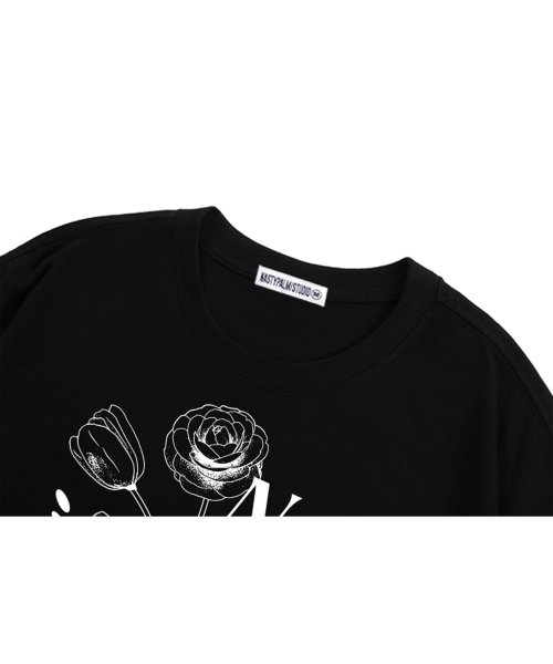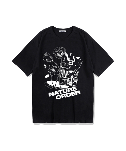 플라워 레터링 로고 티셔츠 블랙