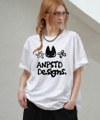 스케치 캣 오버핏 반팔 티셔츠 [ 화이트 ]