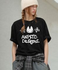 스케치 캣 오버핏 반팔 티셔츠 [ 블랙 ]