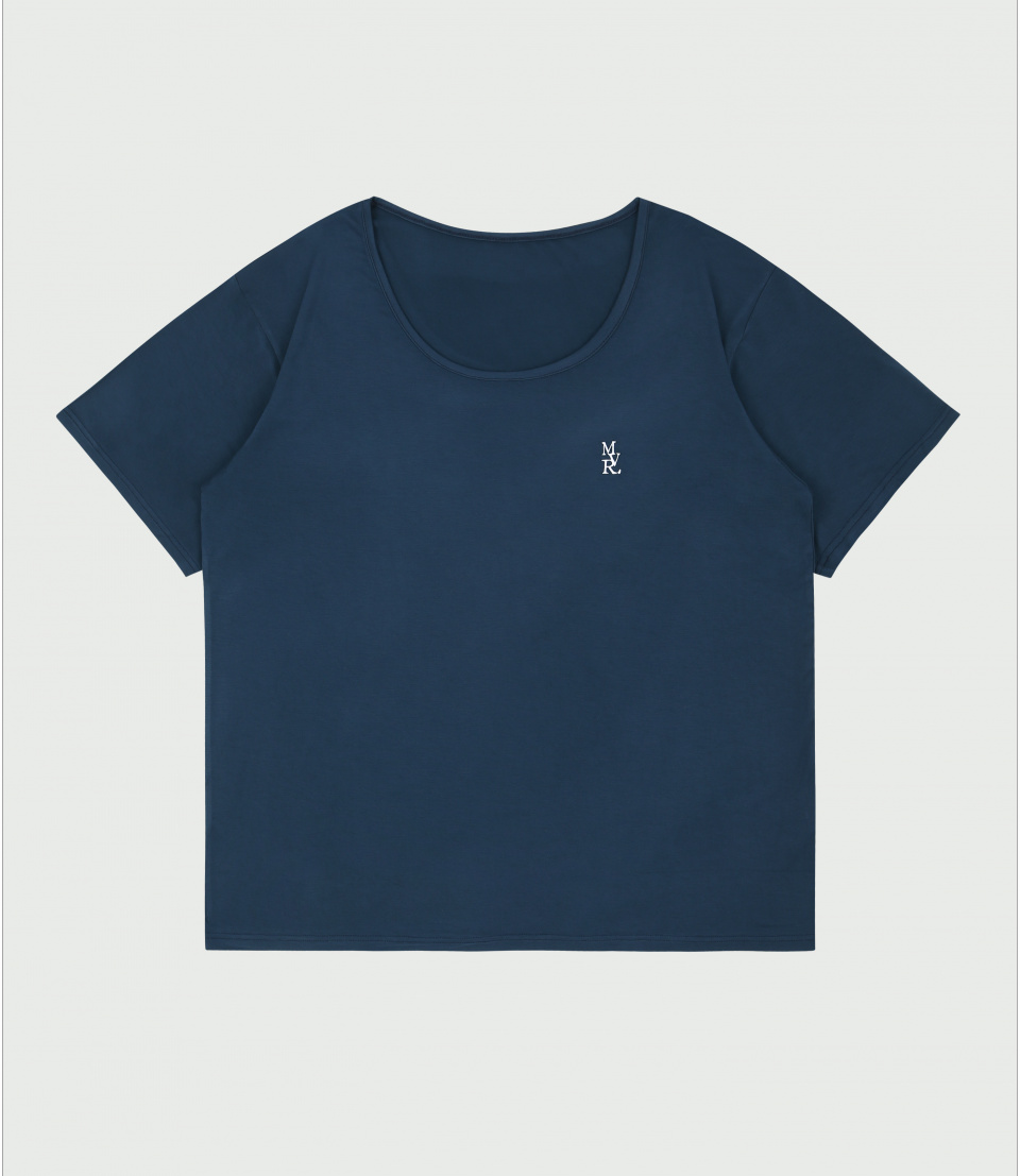 MVR 로고 와이드 U넥 티셔츠 [네이비]