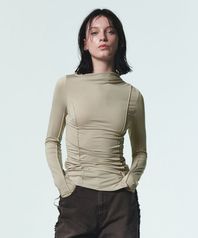ASYMMETRIC HALF NECK SLIT TOP [OATMEAL]
