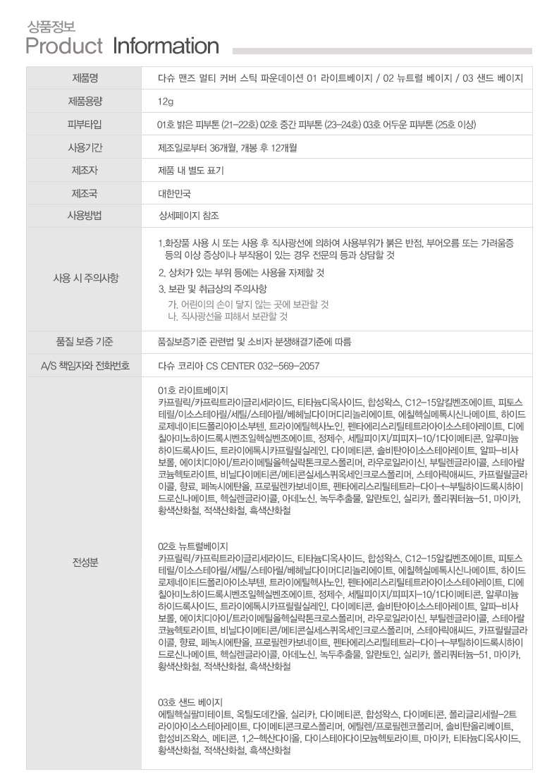 맨즈 멀티 커버 스틱 파운데이션 (3color)
