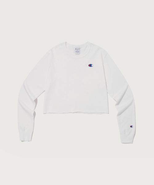여성 보이프렌드 크롭 롱슬리브 티셔츠 White