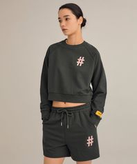 우먼즈 클래식 해시태그 로고 크롭핏 맨투맨(다크 차콜)