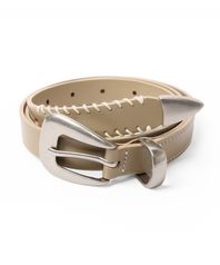 심플 웨스턴 노티드 하드레더 벨트 BEIGE