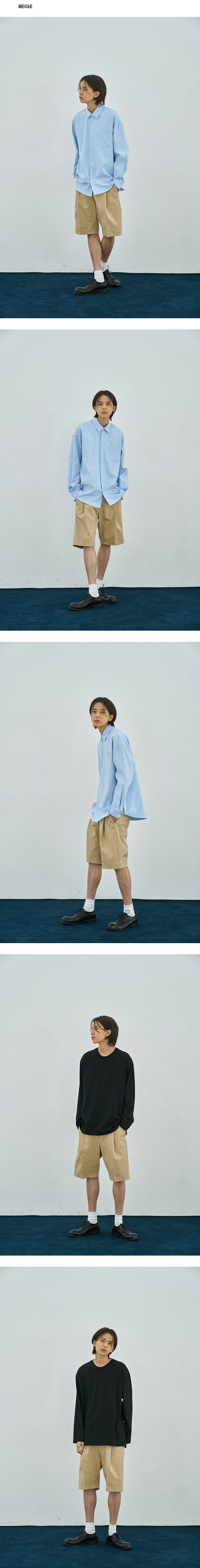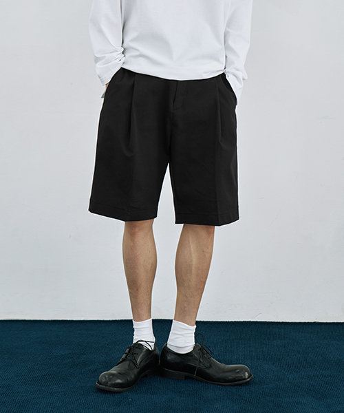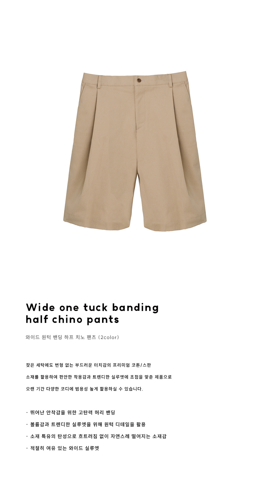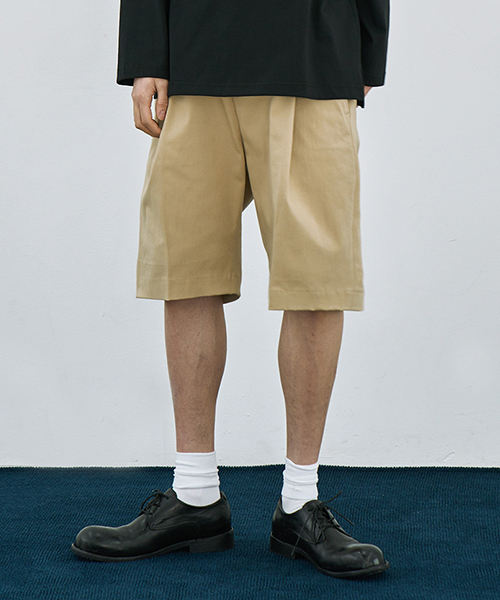 와이드 원턱 밴딩 하프 치노 팬츠 [BEIGE]