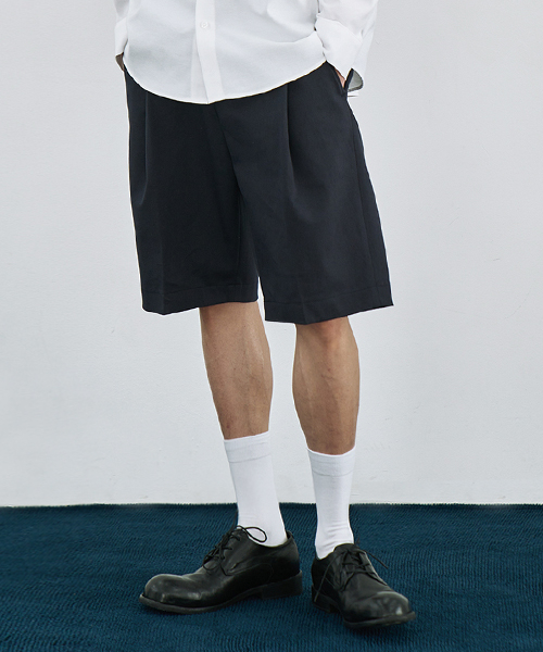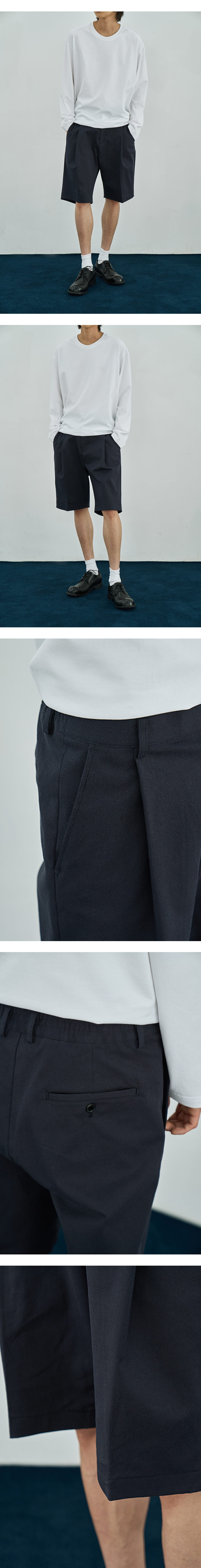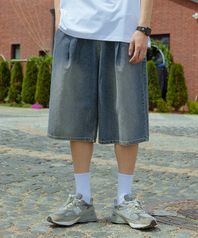 원턱 버뮤다 밴딩 데님 팬츠 중청