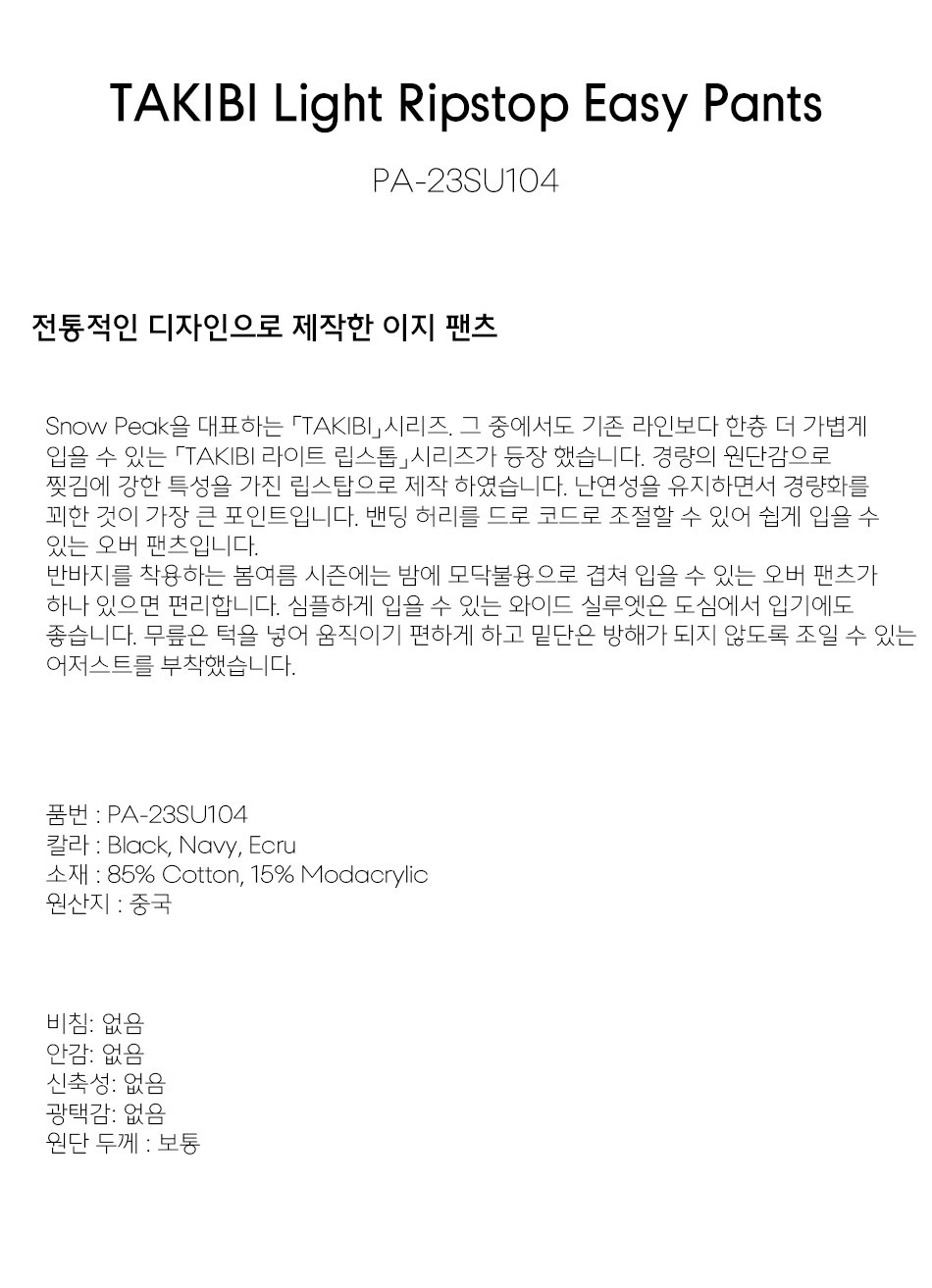 TAKIBI 라이트 립스탑 이지 팬츠 - 에크루 / PA-23SU104EC