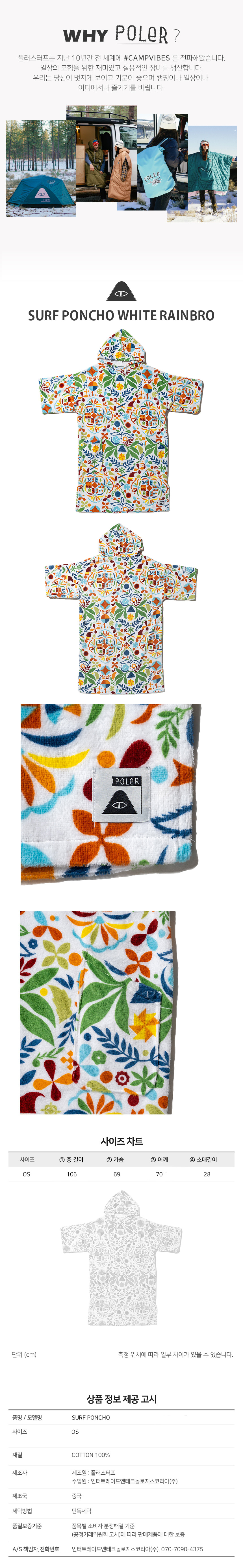 서핑 판초 WHITE RAINBRO