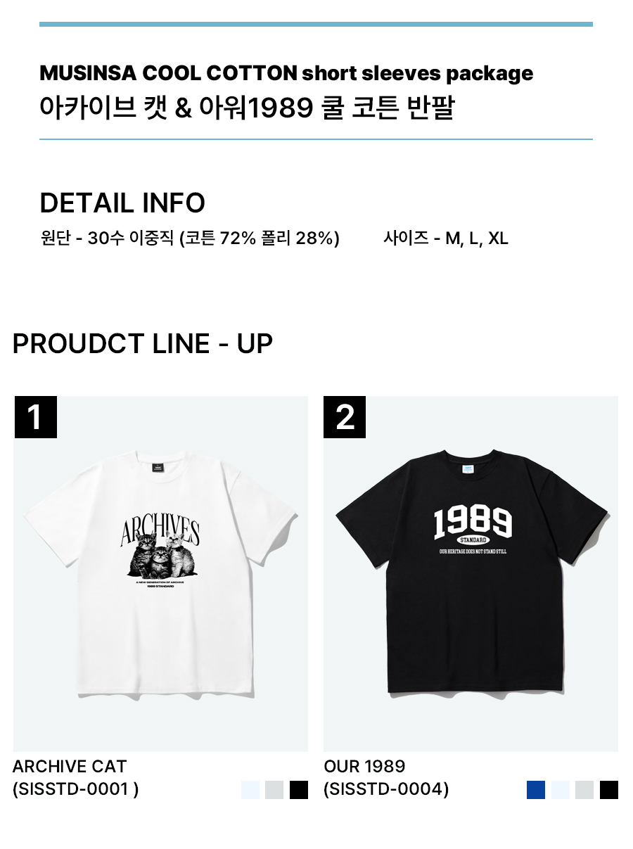 [2PACK] ARCHIVES CAT & OUR1989 쿨코튼 반팔