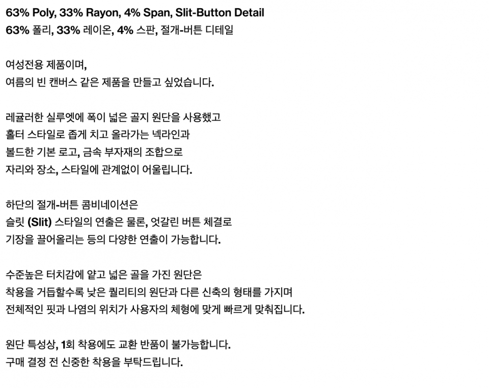 실측 사이즈는 재는 방법에 따라 2~3cm 정도의 오차가 발생 할 수 있으며, 교환 반품 사유에 해당하지 않습니다.