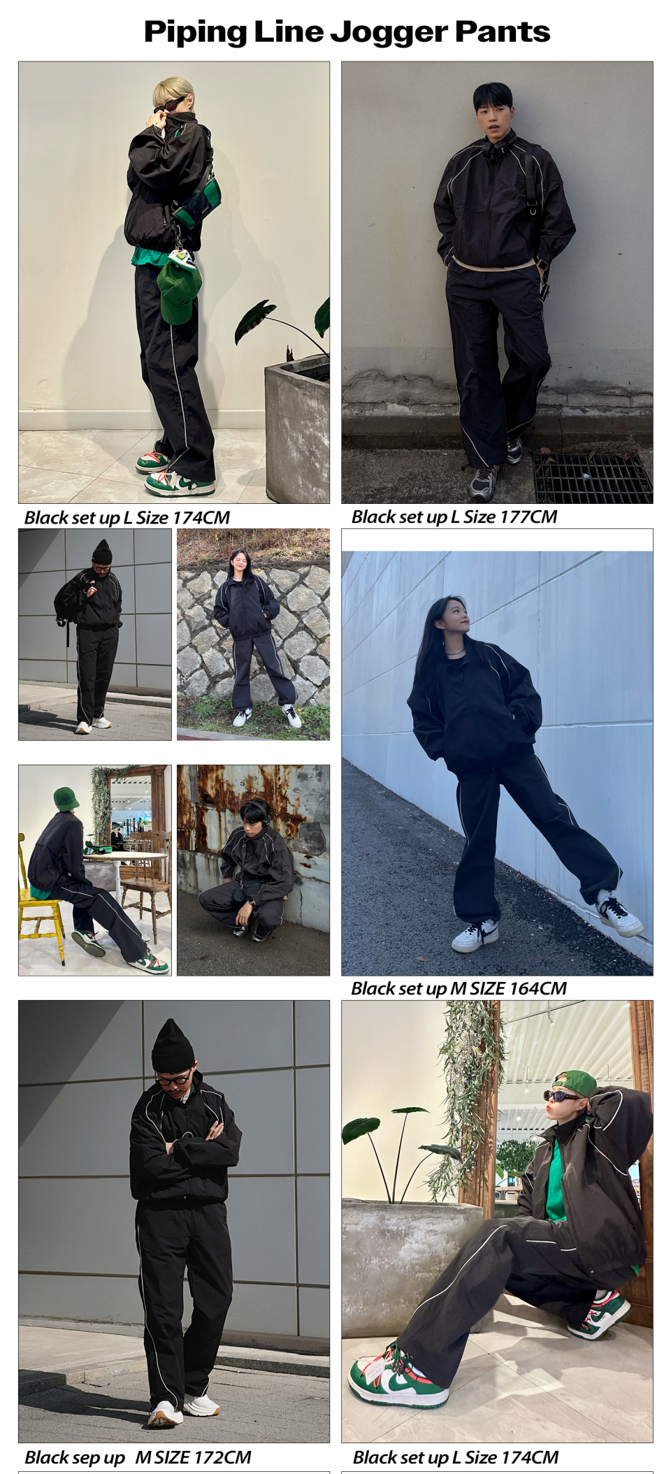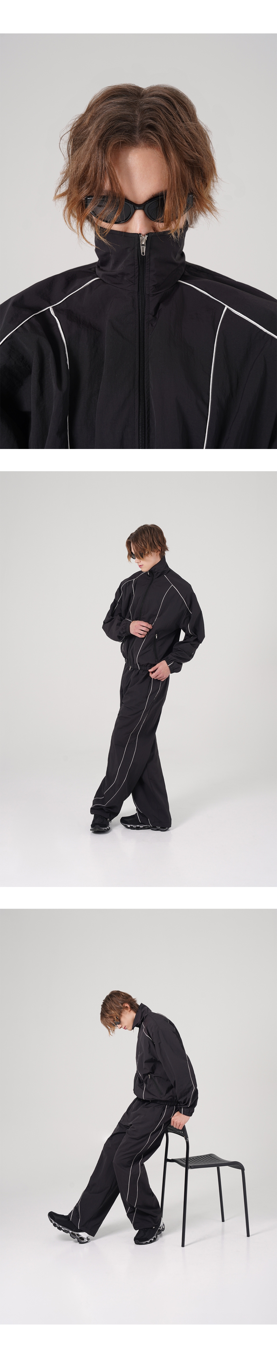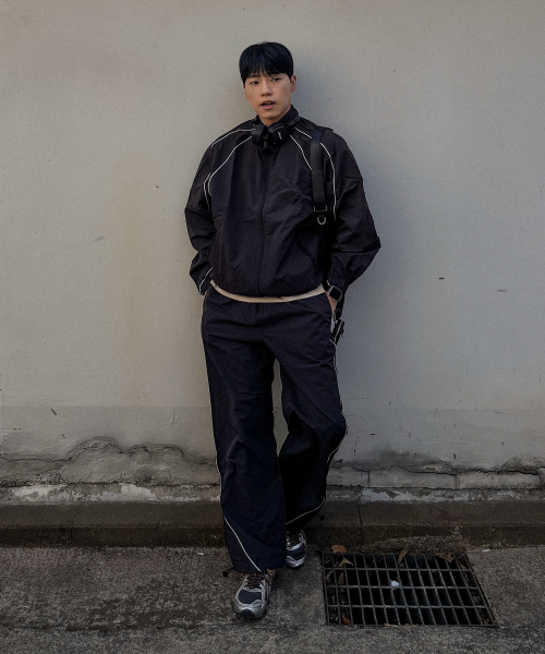 파이핑 라인 트랙 스트링 팬츠 (BLACK)