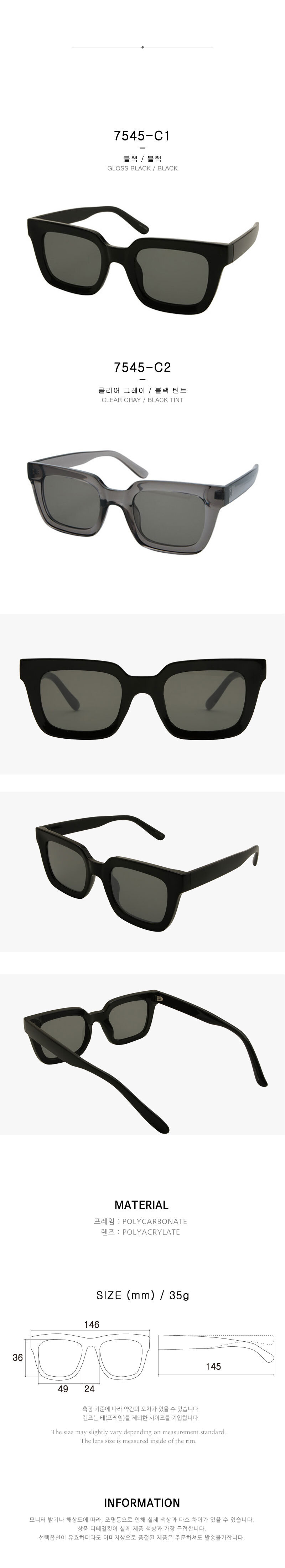 볼드 프레임 선글라스 사각 남자 여자 자외선차단 7545