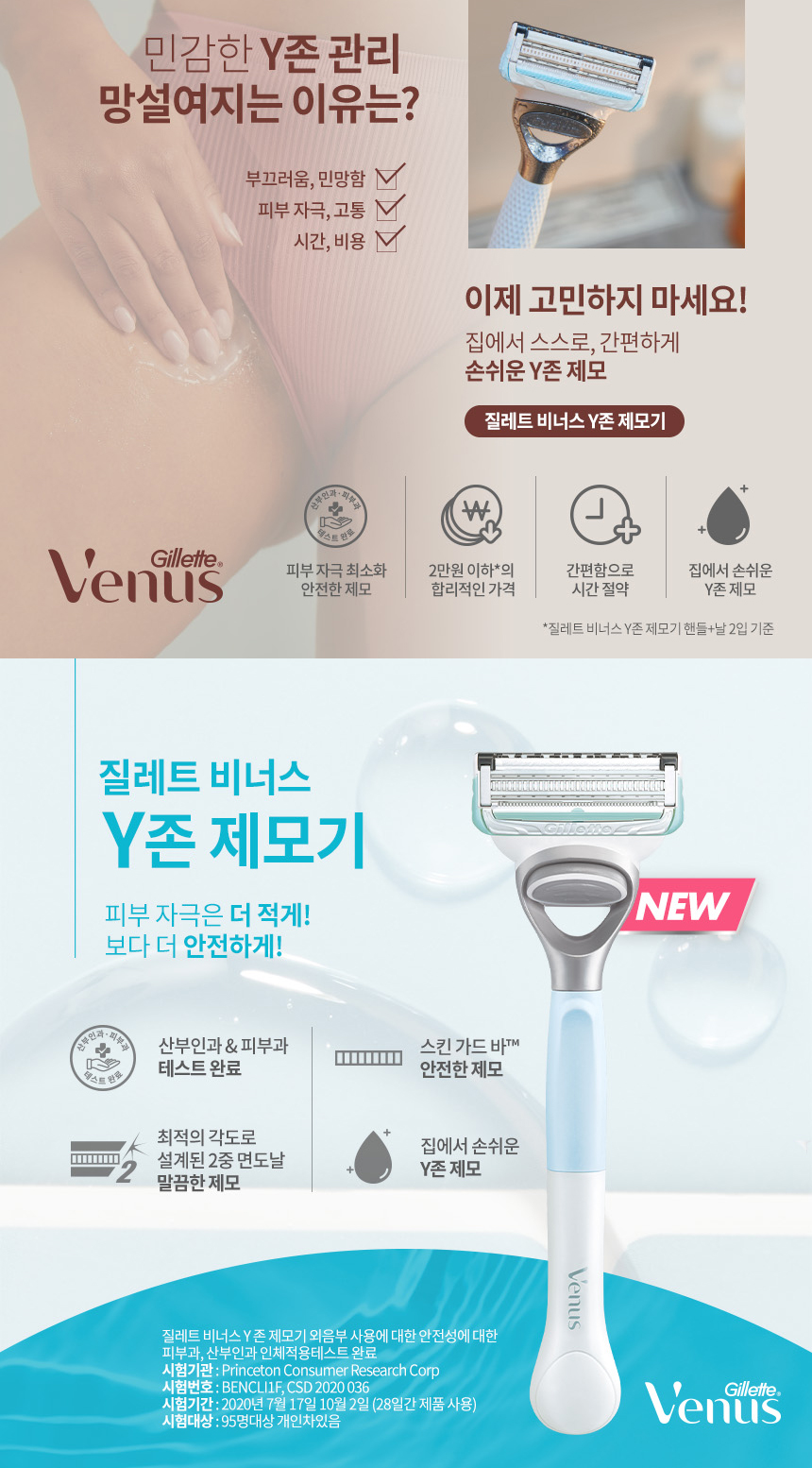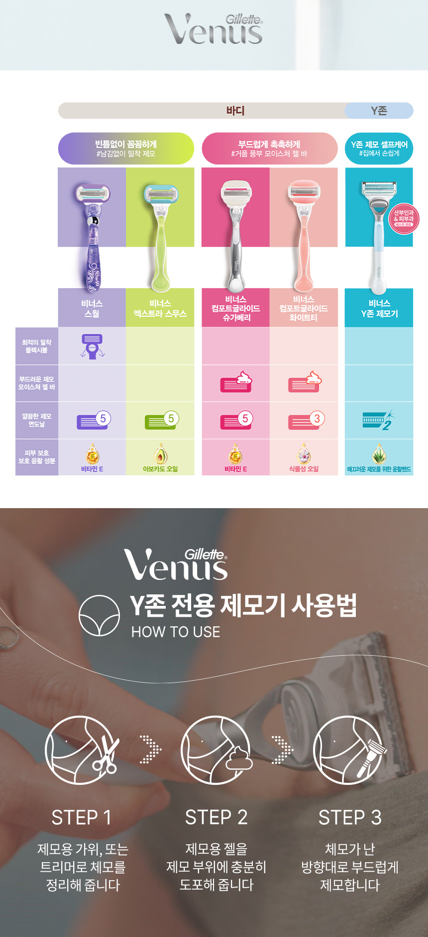 비너스 Y존 제모기 2up (면도기1up + 면도날 1입)