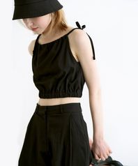 나일론 리본 밴딩 슬리브리스 - 블랙