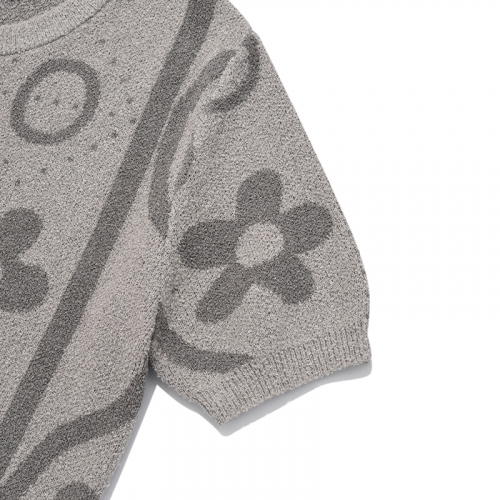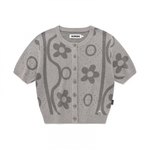 체리 자카드 패턴 숏 슬리브 가디건 [멜란지 그레이]